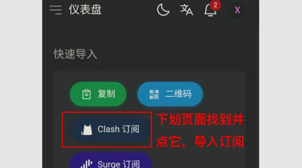 2. 如果始终无法成功添加新配置,请复制并手动导入节点订阅。
