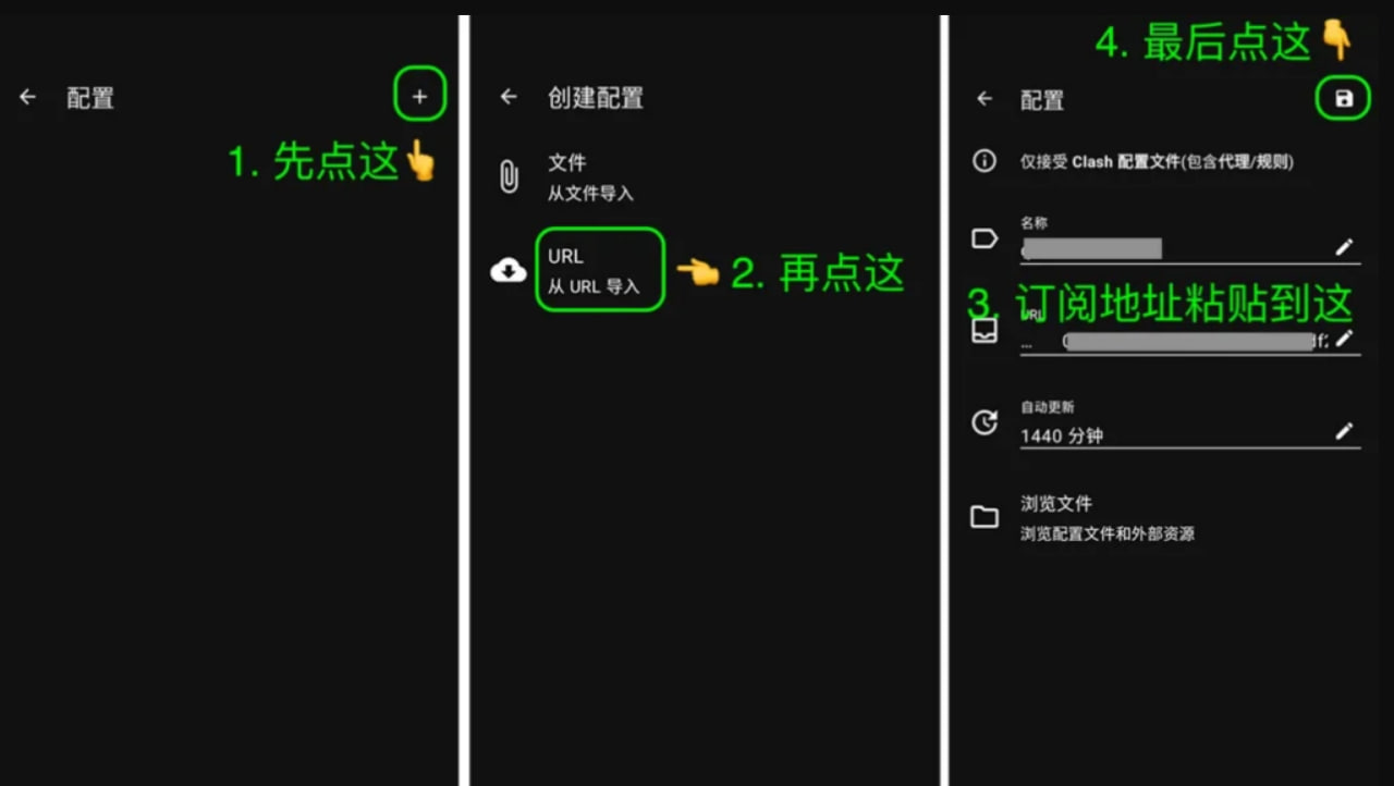 教程效果如上,详细步骤如下不知道 Clash for Android 怎么用的朋友,五分钟包教包会